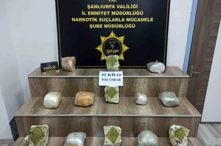 Şanlıurfa'nın Siverek ilçesinde narkotik polisinin durdurduğu tırın dorsesinde yapılan aramalarda 32 kilogram toz esrar...
