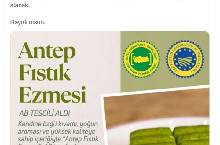TARIM ve Orman Bakanı İbrahim Yumaklı, Gaziantep fıstık ezmesinin Avrupa Birliği'nden coğrafik işaret tescili...