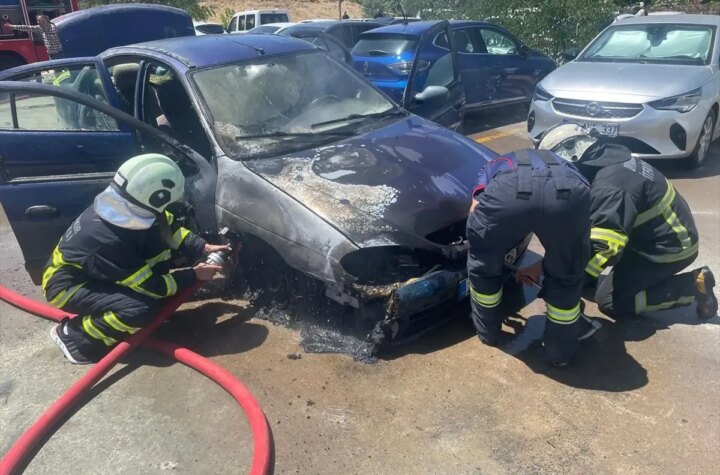 Diyarbakır'da Gazi Yaşargil Eğitim ve Araştırma Hastanesi otoparkında park halindeki bir arabada çıkan yangın,...