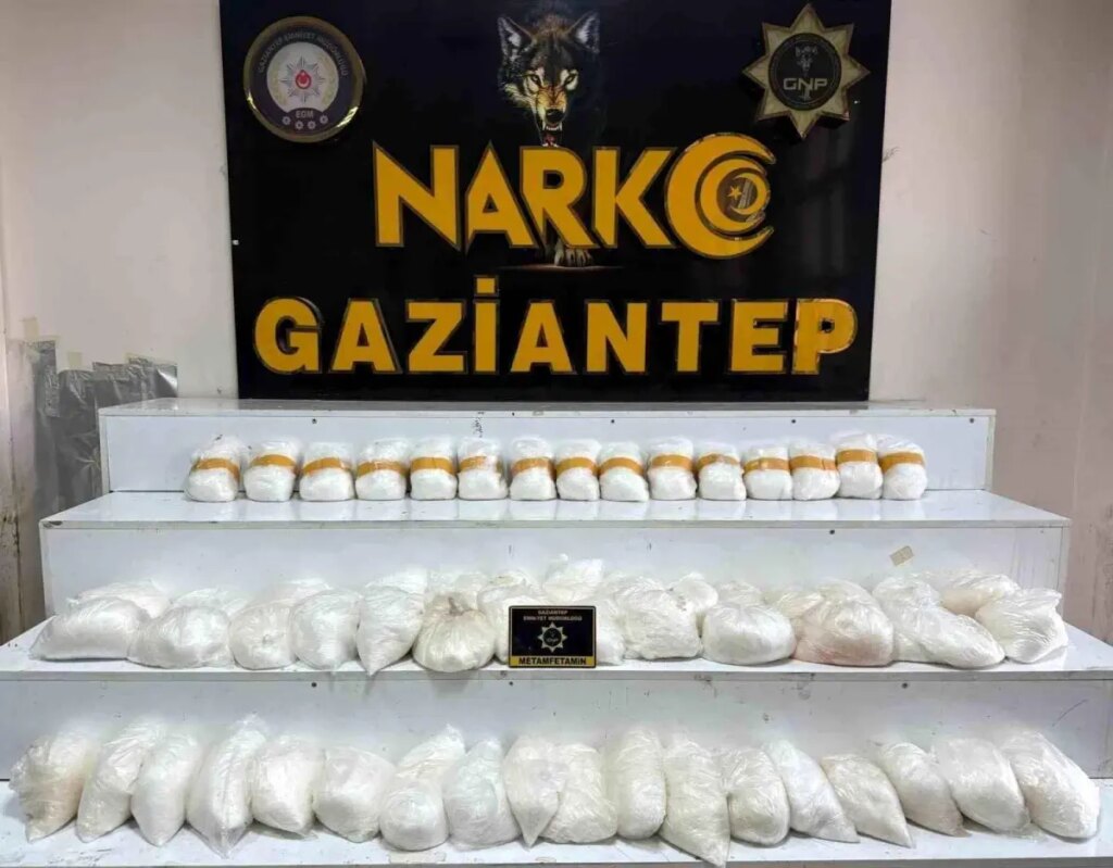Gaziantep İl Emniyet Müdürlüğü Narkotik Suçlarla Mücadele Şube Müdürlüğü grupları ve Cumhuriyet Başsavcılığı koordinesiyle uyuşturucu tacirlerine yönelik operasyon yapıldı. Operasyon çerçevesinde, kuşkulu bir araç durduruldu. Araçta yapılan hassas burunlu dedektör köpek takviyeli isimli aramalarda 58 kilo 450 gram metamfetamin ele geçirildi. Olayla ilgili 2 kuşkulu yakalandı.