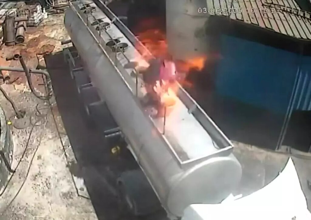 Gaziantep’in Nizip ilçesinde ayçiçek yağı fabrikasında bir çalışanın ağzında sigara ile açmaya çalıştığı tanker kapağı bomba üzere patladı. Çalışanın metrelerce savrularak ağır yaralandığı patlama anı güvenlik kamerasına yansıdı.