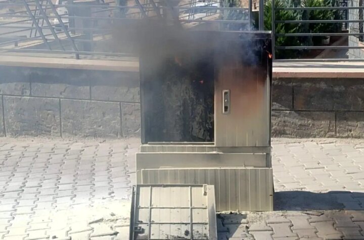 Şanlıurfa'nın Karaköprü ilçesinde bir elektrik panosu çok sıcak ve yüklenmeden ötürü yandı. Olayın imajları...