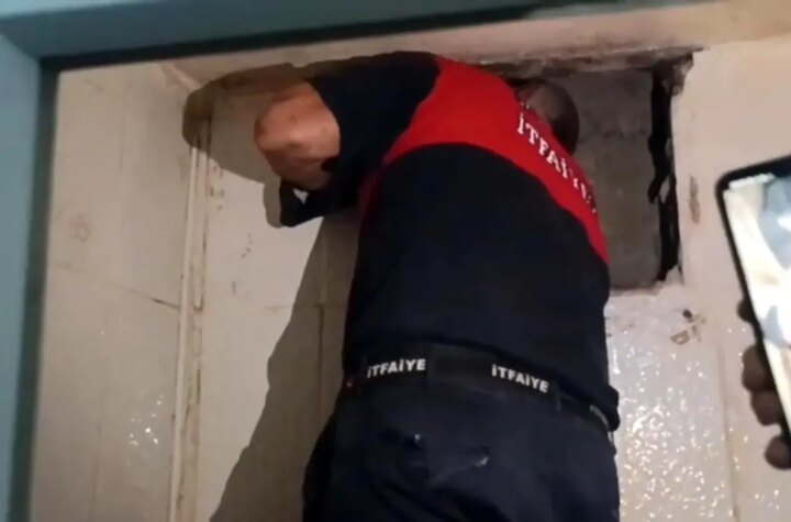 Şanlıurfa'da bir konutun havalandırma boşluğunda mahsur kalan yavru kedi, itfaiye takımları tarafından kurtarıldı. Yavru...