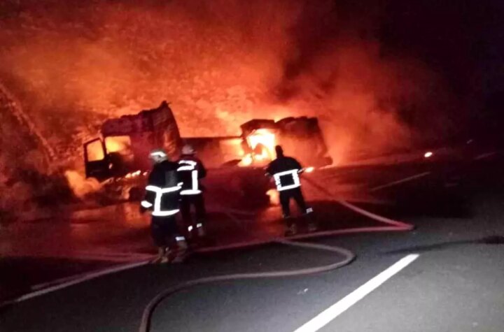 Şanlıurfa-Gaziantep Otoyolu'nda devrilen akaryakıt tankeri alev aldı. Yangın itfaiye takımları tarafından denetim altına alındı,...