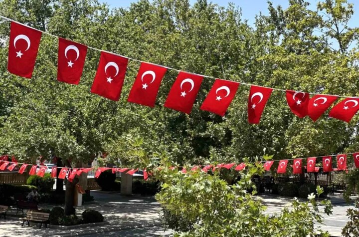 Şanlıurfa'nın Siverek ilçesinde cadde ve sokaklar ay yıldızlı bayraklarla donatıldı.