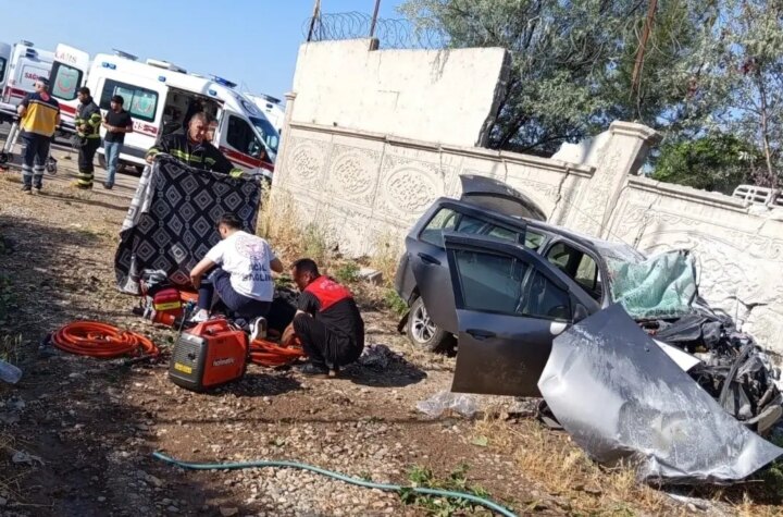 Diyarbakır'ın Bismil ilçesinde lastiği patlayan arabanın akaryakıt istasyonunun duvarına çarpması sonucu 59 yaşındaki Gazal...