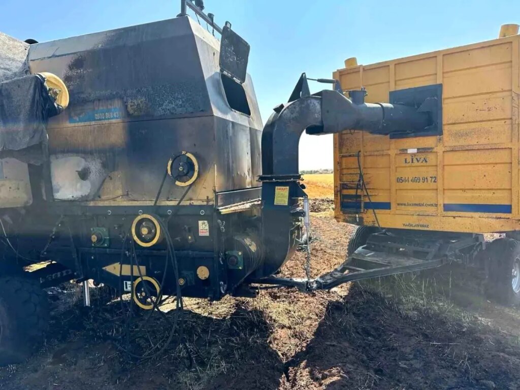 Şanlıurfa’nın Viranşehir ilçesinde, hasat yapan biçerdöverin motor kısmında çıkan yangın, buğday tarlasına ziyan verdi