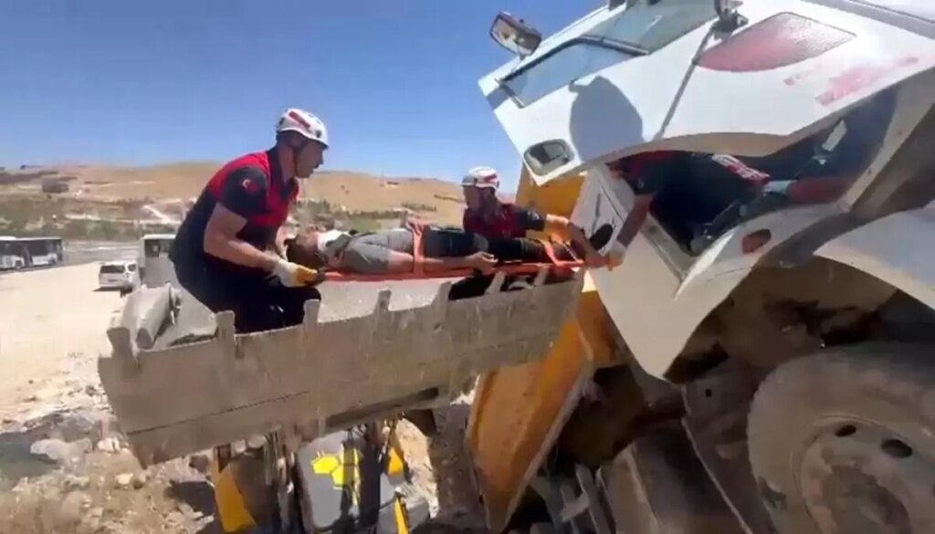 Edinilen bilgiye nazaran kaza, Şanlıurfa’nın Haliliye ilçesine bağlı Güzelyurt Mahallesi’nde yaşandı. Teze nazaran, Ahmet S.’nın kullandığı 63 ABY 260 plakalı kamyon, şoförünün denetiminden çıkarak şarampole devrildi. Kazayı görenler durumu itfaiye ve sıhhat takımlarına haber verdi. Olay yerine giden itfaiye grupları, aracın ön kabinindeki yaralı şoföre ulaşmak için bölgedeki bir kepçeden yardım istedi. Kepçenin geniş kovasına binen itfaiye ve sıhhat takımları, yaralı şoföre müdahale etti. Sedyeye bağlanan yaralı, kepçenin geniş kovasına alınarak indirildi. Birinci müdahalesi olay yerinde yapılan şoför, ambulansla hastaneye kaldırıldı.
