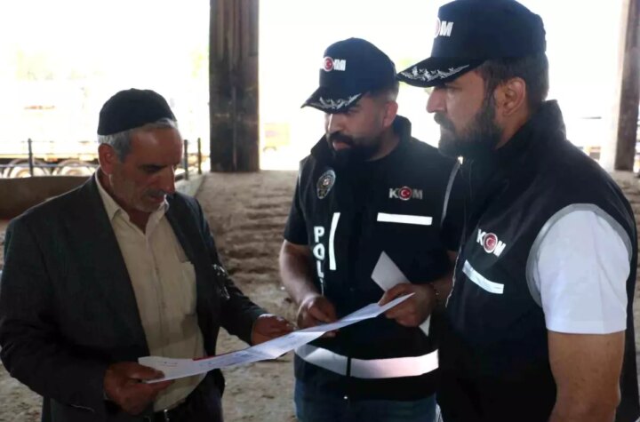 Diyarbakır'da polis grupları, Kurban bayramı öncesi hayvan borsasında düzmece para konusunda hayvan satıcılarını bilgilendirdi....