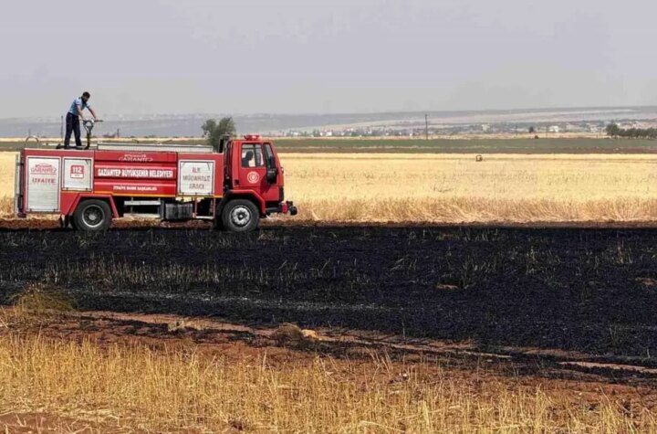Gaziantep'in Araban ilçesinde çıkan yangında 15 dönüm buğday ekili alan ziyan gördü. Yangın, vatandaşlar...